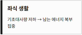 - 활동량 부족과 좌식 생활: 현대인의 고질병인 '오래 앉아 있기'는 하체 근육 사용량을 줄여 기초대사량을 떨어뜨리고, 남는 에너지를 복부로 집중시킵니다.