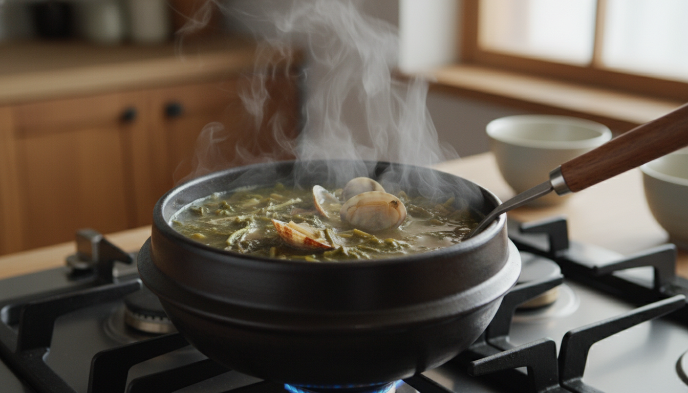 - 감칠맛 더하기: 된장을 풀고 육수가 다시 끓어오르면 바지락을 넣고 입을 벌릴 때까지 끓입니다. 이때 바지락에서 우러나는 시원한 맛이 쑥국의 감칠맛을 좌우합니다.