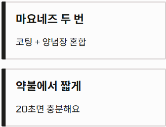 - 맛술 (또는 청주) 1스푼 (비린내 제거)