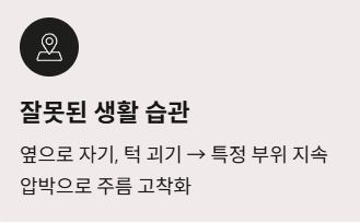 - 잘못된 생활 습관: 옆으로 누워 자거나 턱을 괴는 습관은 특정 부위에 지속적인 압박을 가해 주름을 고착화합니다.