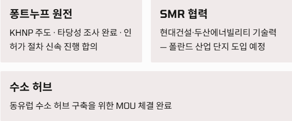 에너지 안보가 국력인 시대, 한·폴란드 양국은 원자력을 포함한 청정에너지 동맹을 선언했습니다. 이는 탄소 중립과 에너지 독립을 동시에 달성하기 위한 전략적 선택입니다.